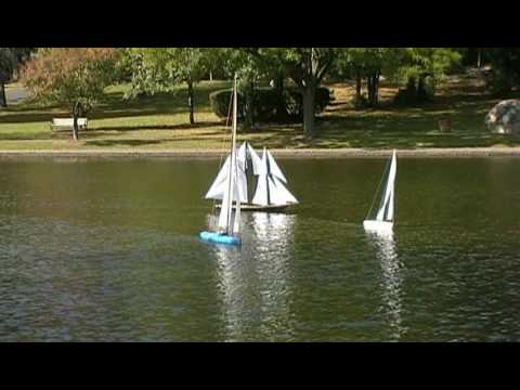 It was a warm and breezy April Sunday afternoon and I test launched my unfinished schooner to see how it would handle. It has a bulb type keel, an idea I got from John Dowd and his magnificent 1/20 scale schooner. For over 3 years he has given me a lot of advice. Thanks JayDee