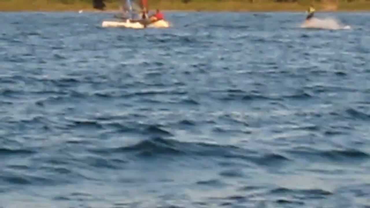 at 59 seconds you see the daggerboard with a 90* bend, plus you also see the T on the bottom of the rudder… and oracle did break their stbd daggerboard
