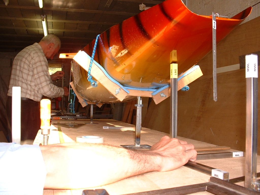 At this point the boat is disassembled and the hull is placed on the gauge table and, using photo data, it is aligned with the real LWL at the defined “std height” to the table.