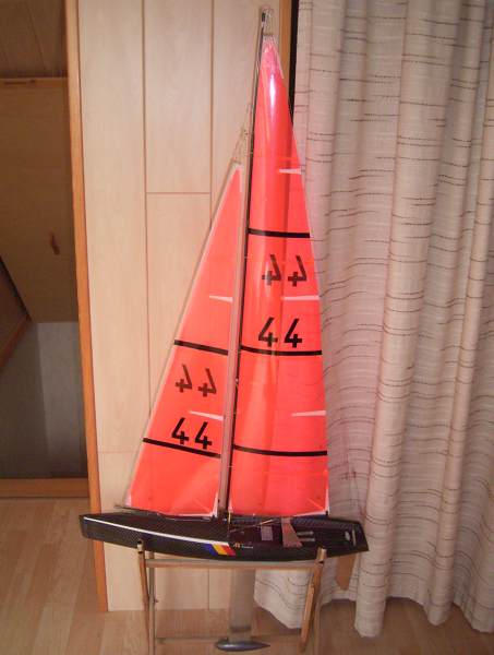 Now I´m builing a new mast and new sails for light winds. I try to make a flexy top, which open the main automatically.